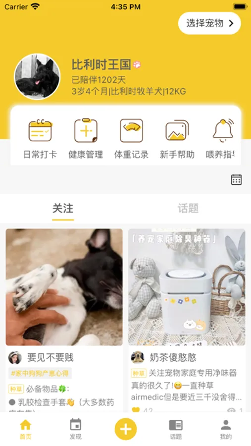 为自己的宠物创建个人档案,可以进行打卡等操作。