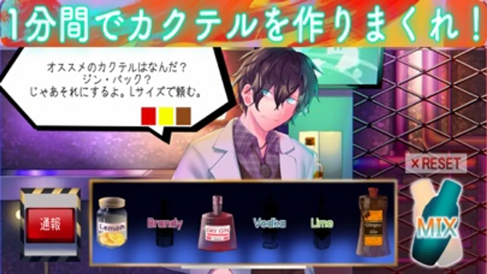 個性豊かなキャラクターたちが次々とカクテルを注文してくるので、1分間でより多くのカクテルを提供しよう!