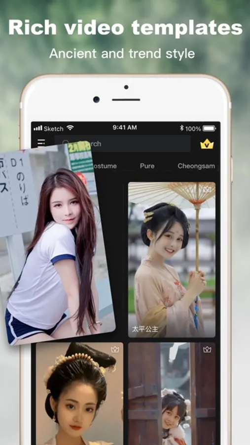 Face Video has hundreds of exquisite video templates, including ancient Hanfu, modern goddess, elegant cheongsam, men only, and more. With just one click of what you want, you can be the star of your video!
