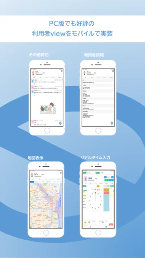・利用者に関するファイルの一覧表示・写真追加・共有が可能。