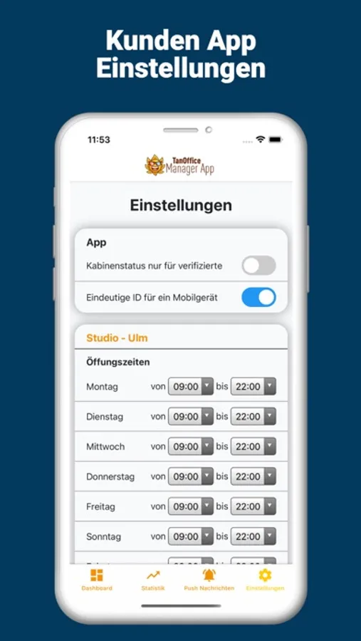 Änderungen, bezüglich Einstellungen wie Öffnungszeiten, Produktinformationen kann man in Sekundenschnelle per TanOffice Manager App von jedem beliebigen Standort vornehmen.