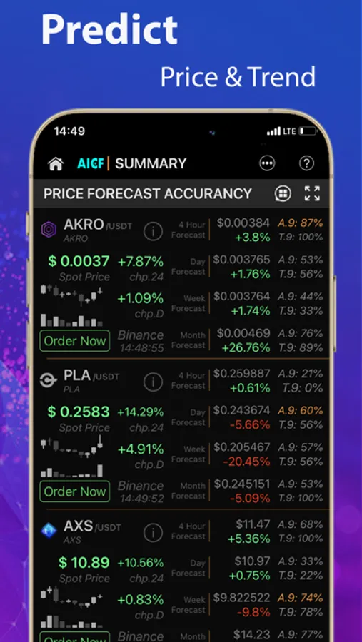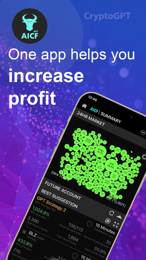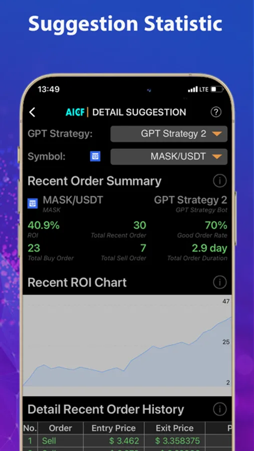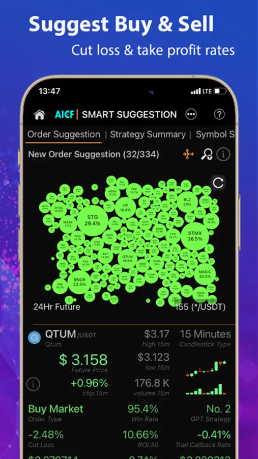 • Support future market where you can take profit in the uptrend and downtrend also. In the case you invest in spot market (traditional market) you can use buy order suggestion to buy for holding and use sell order suggestion to close the order.