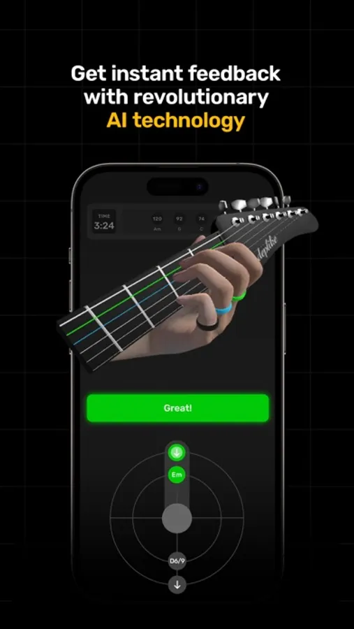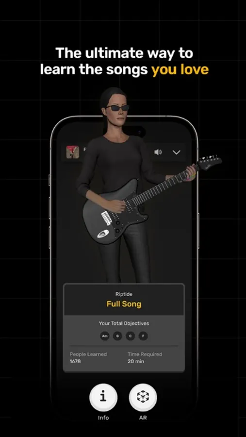 Guitar Learning App listens while you play, and gives you instant feedback to improve your technique. Your 3D coach guides you through each lesson with easy to follow step by step instructions, so you will see immediate results as you practice.