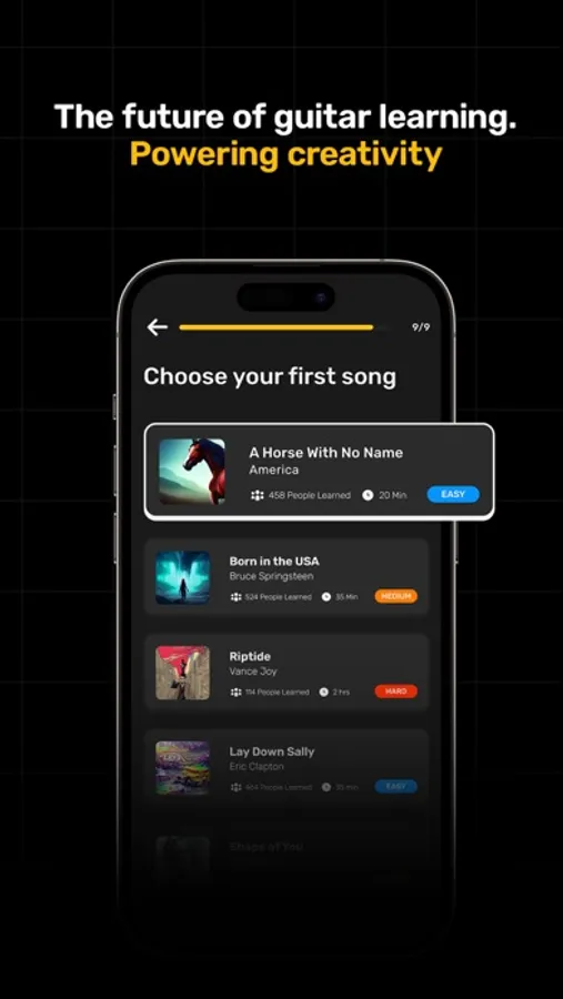 From bite-sized lessons and effortless learning to streaks and adaptive learning paths, Guitar Learning app is the ultimate place to learn your favorite songs on guitar.