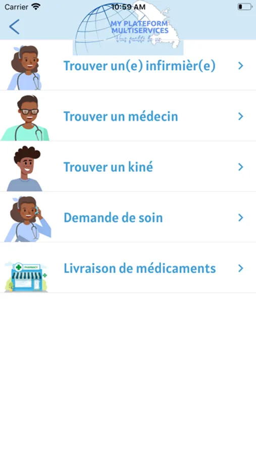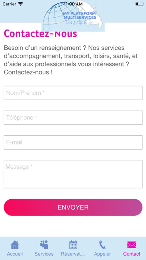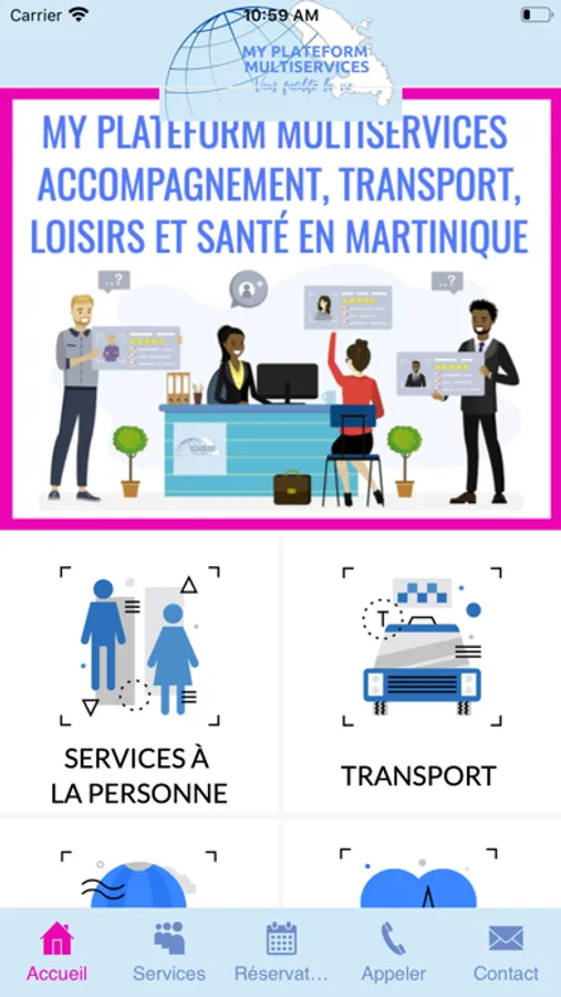 Services à la personne, transport, loisir, santé, rubrique professionnels, découvrez tous les services que nous proposons en Martinique dans notre application.