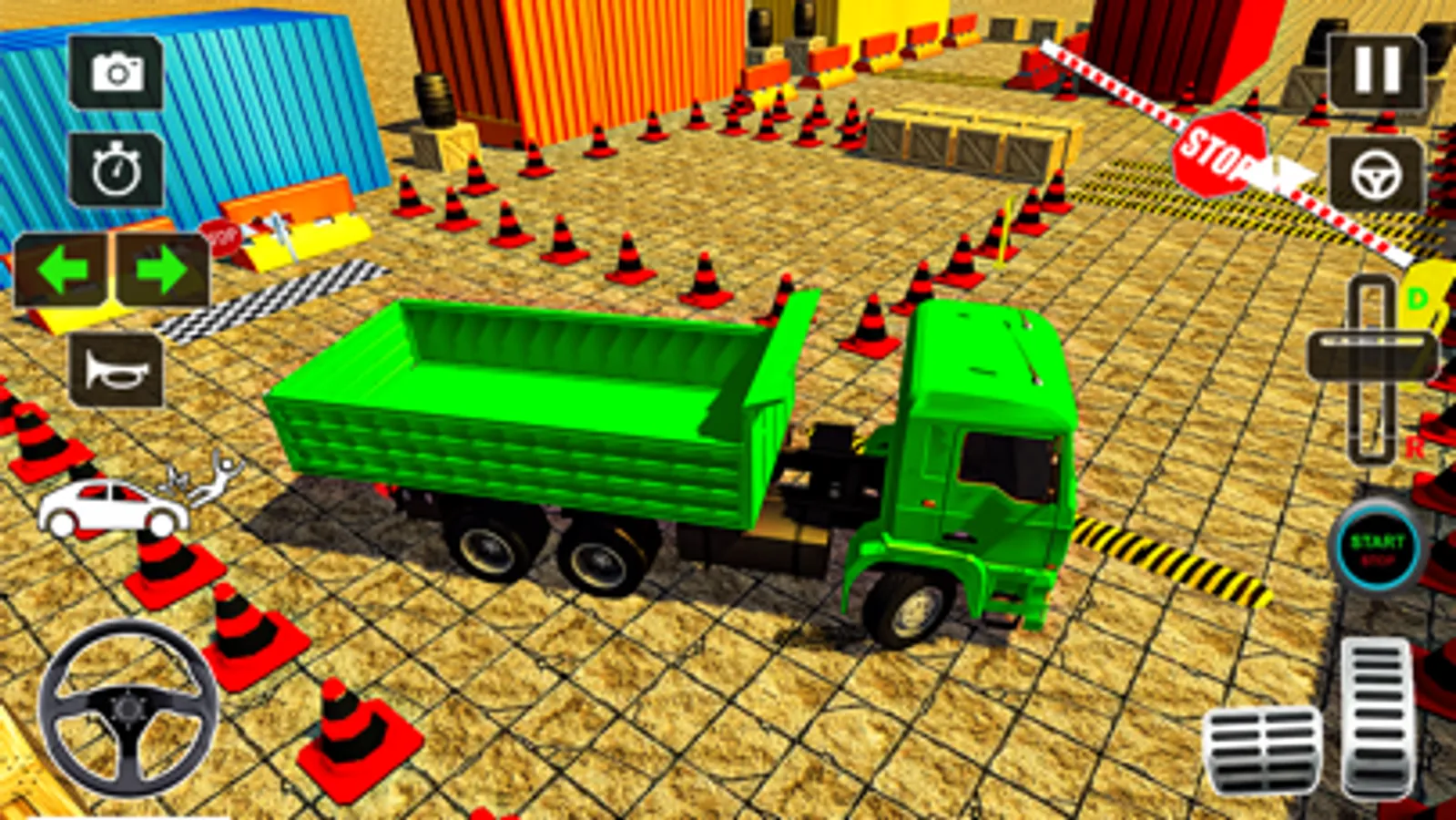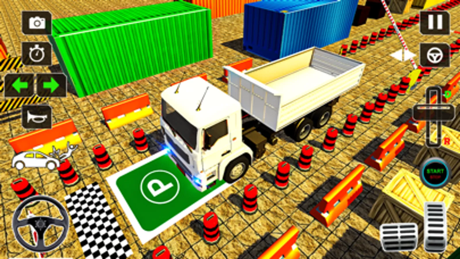. Drive the Truck carefully avoiding obstacles and moving traffic cones.