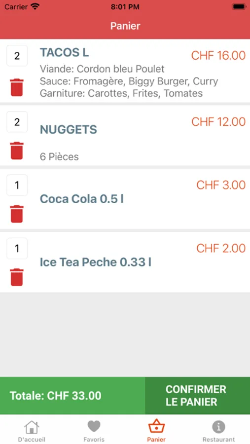 Il est possible de payer en cash, carte de crédit et twint.
