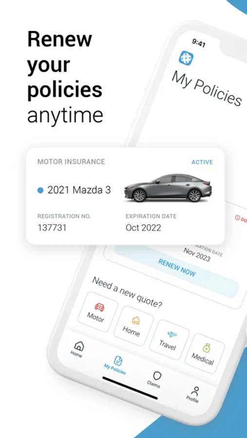 - Renew your policies anytime.