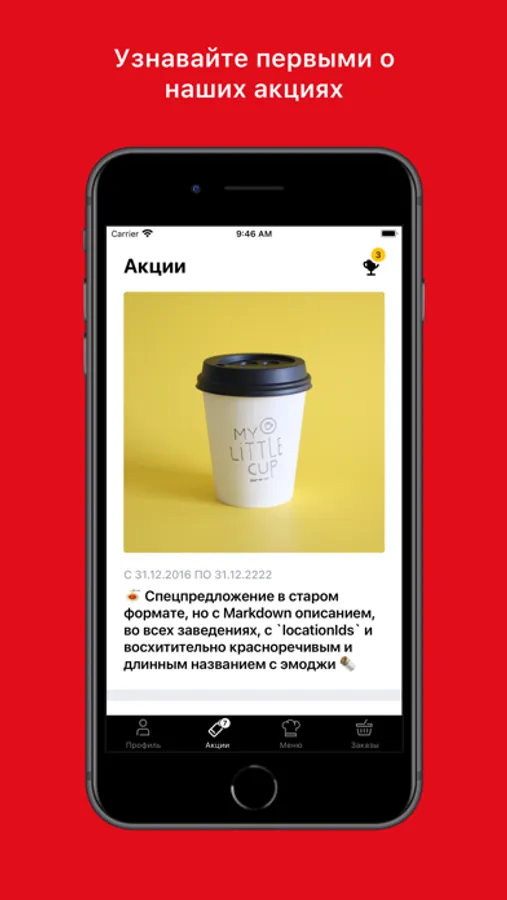 Получайте важные уведомления об акциях, новых блюдах и скидках с помощью приложения столовой “Райдан”.