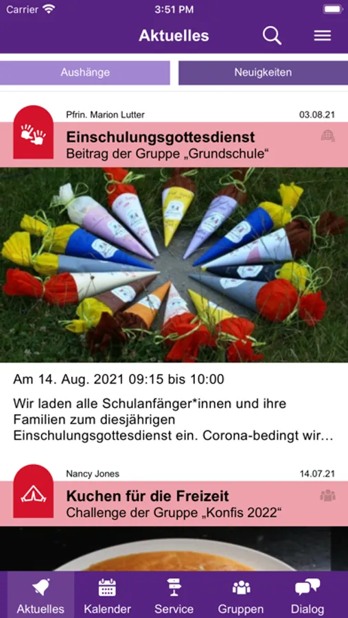 1. In einem virtuellen Schaukasten können die Nutzer:innen alles über aktuelle Aktivitäten und Neuigkeiten der Kirchengemeinden und Einrichtungen erfahren.