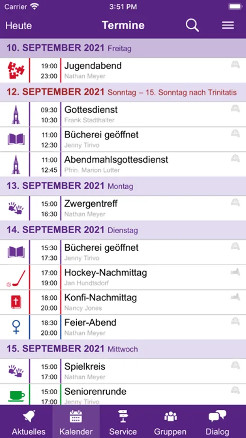 2. Ein Kalender informiert über anstehende Termine in den gewählten Kirchengemeinden und Einrichtungen.