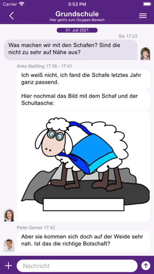 4. Ein Bereich erlaubt die Bildung von Gruppen und den Austausch – wie Teilen von Inhalten oder Kommunikation mittels Chat.