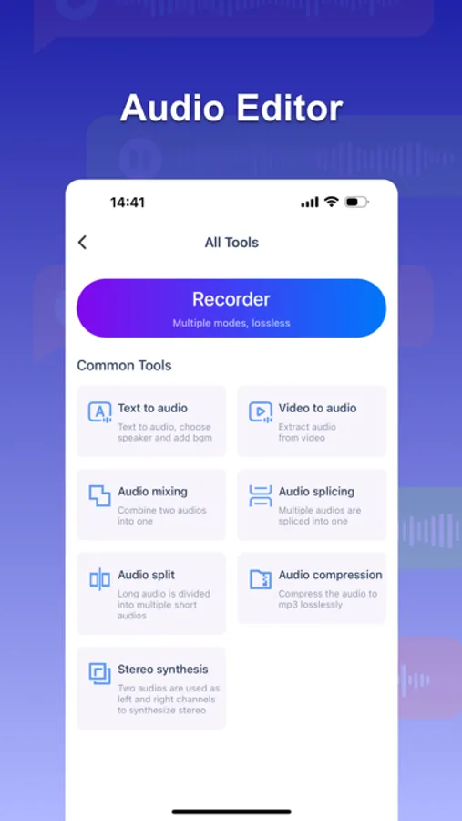 •Easily import audio files from other apps, via File Sharing or AirDrop