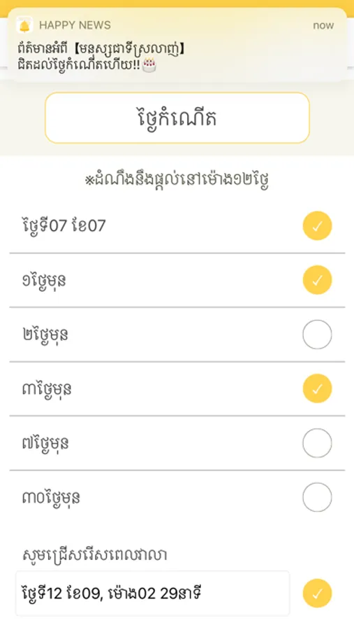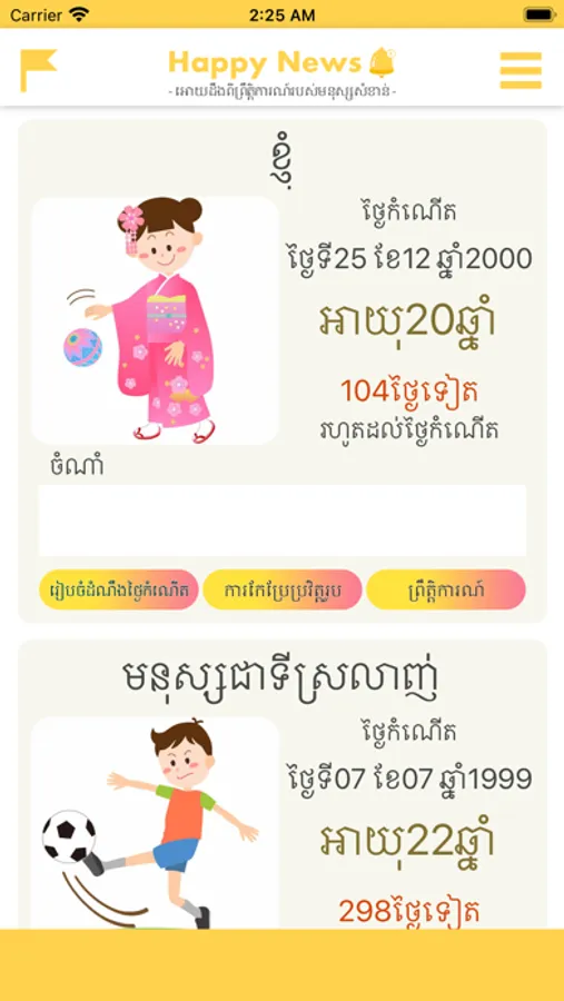 "Happy News" can receive notifications by registering birthday of family and friends etc.