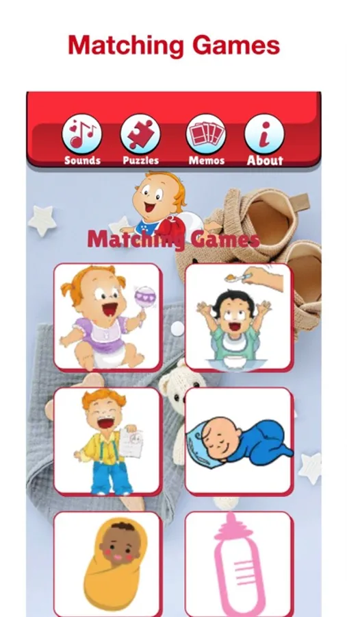 But wait, there's more! The Toddler Learning Games for Kids Free includes a delightful selection of games for kids such as puzzles, matching games with memory cards, and funny babies and toy sounds that will have your child laughing.