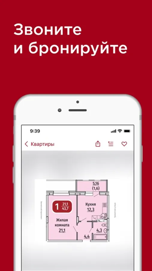 • Добавлять помещения в «избранное»;