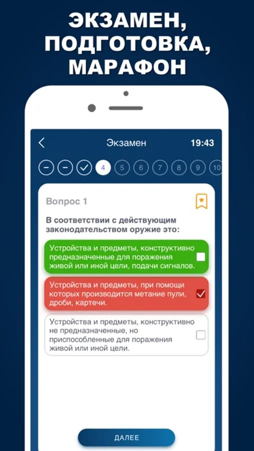 ► Режим марафона - прохождение тестирования по всем вопросам или определенной части вопросов.