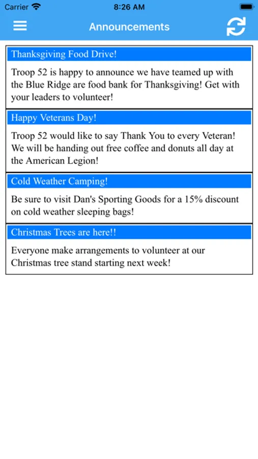 Troopmaster Connect integrates with TroopMaster Web and allows members of your unit to communicate with one another. Two-Deep communication is built in! Also access Announcements, Upcoming Events, RSVP and Newsletters.