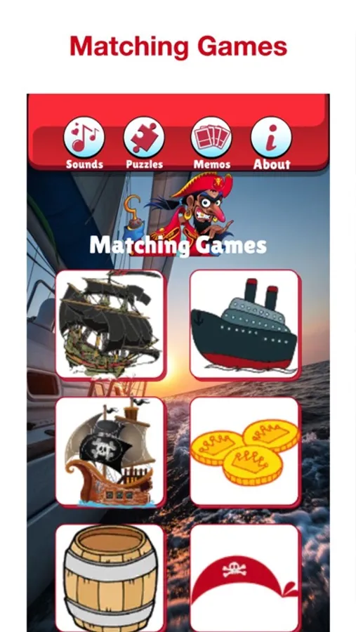 If you're looking for the best pirate ship puzzle games for toddlers, look no further. Our app features a fun memory game for kids that will challenge your child's brain and help them learn problem-solving skills in a new, creative way. It's just like card matching games, except pirate town matching games for kids can be played on your phone or tablet.