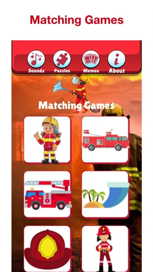 But wait, there's more! The fire station games for kids free includes a delightful selection of fire games for kids such as puzzles, matching games with memory cards, and funny firetruck sounds that will have your child laughing.