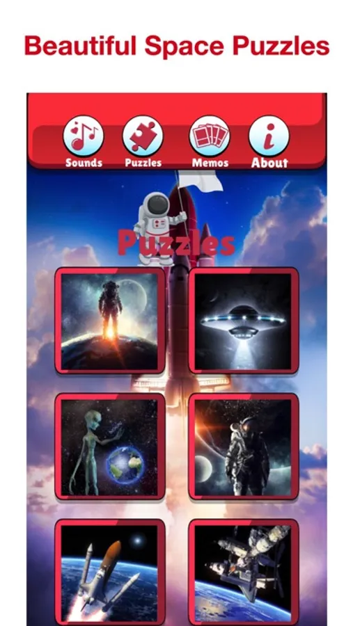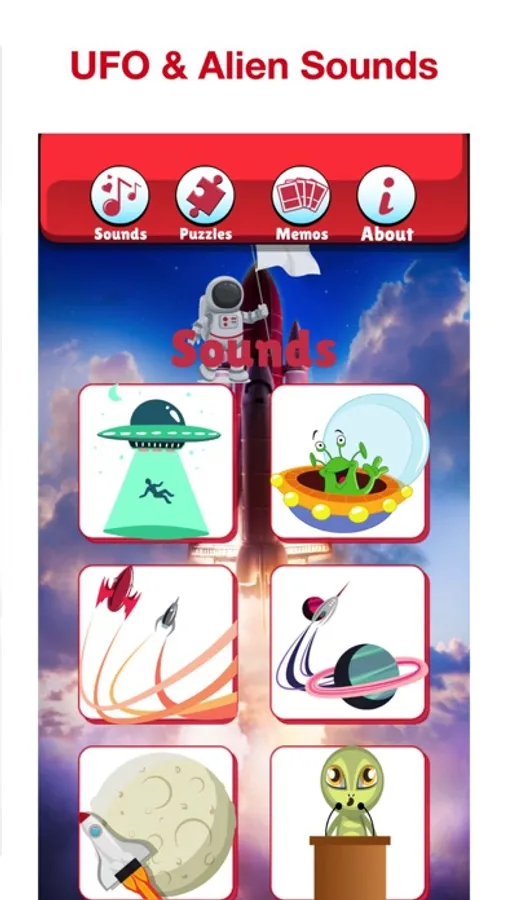 But wait, there's more! The alien games for toddlers free includes a delightful selection of space war games for kids such as puzzles, matching games with memory cards, and funny space ship sounds that will have your child laughing.