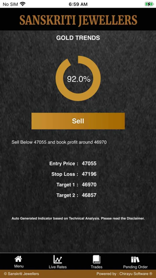 The app has a special feature of predicting GOLD TREND using various analysis tools.