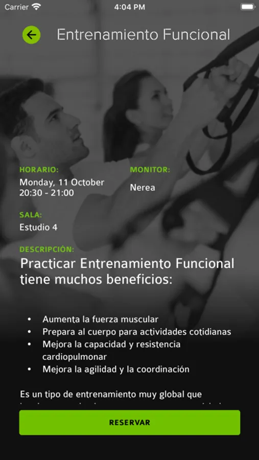 - Reserva y acceso a clases dirigidas