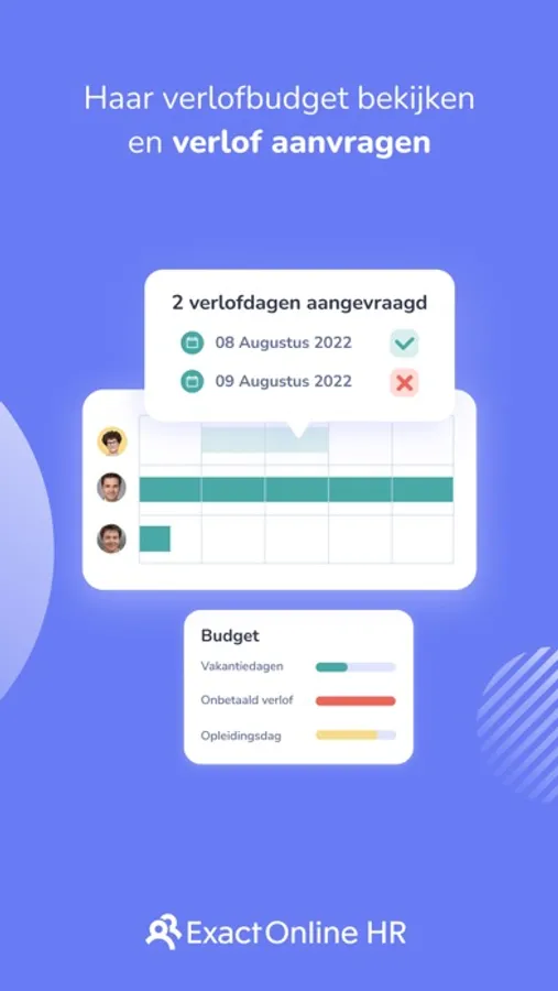 De applicatie kan enkel gebruikt worden als jouw onderneming werkt met het Exact Online HR Platform én de Self Service geactiveerd heeft voor alle medewerkers.