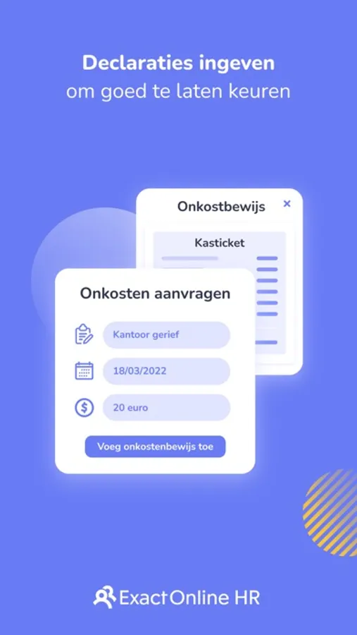 Declaraties doorgegeven? Met je Employee app regel je het in een paar stappen. Vul de gegevens aan, voeg een foto van het bonnetje toe en verstuur het rechtstreeks naar HR.