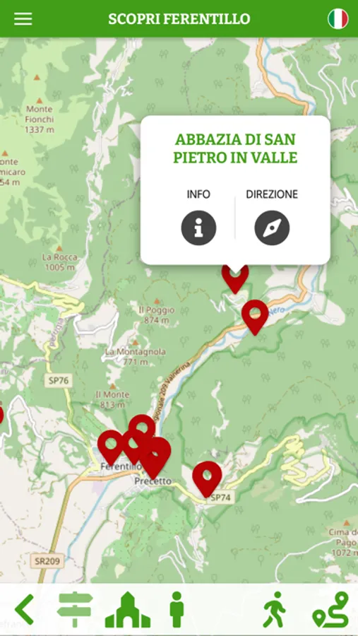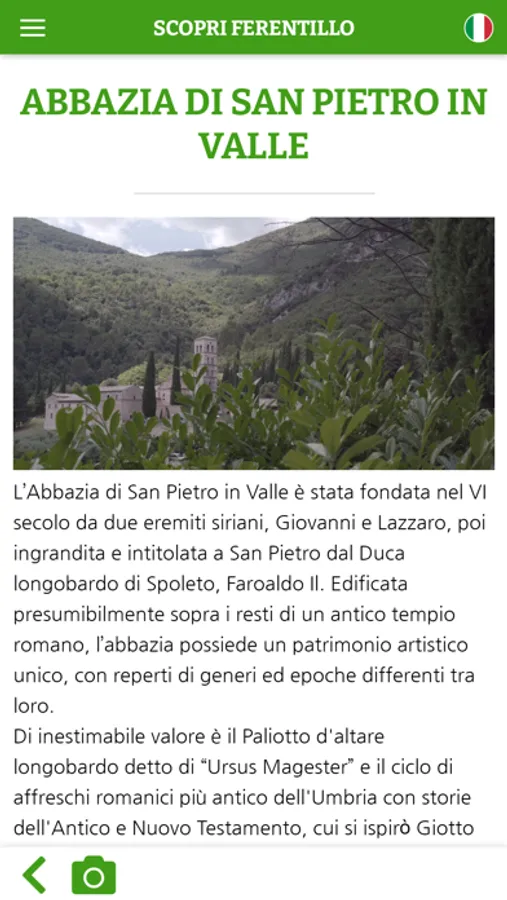 L'app permette di accedere alle informazioni relative ai punti di interesse di Ferentillo e territori limitrofi attraverso una mappa interattiva e l'utilizzo di sensori bluetooth.