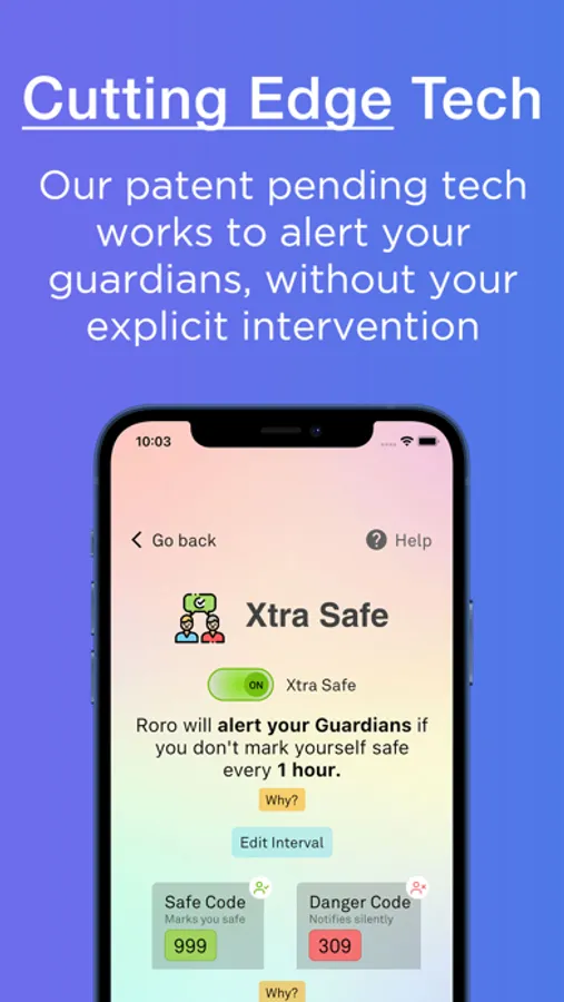 Our patent pending technology works to alert your guardians, without explicit intervention from you. When optional features are enabled, Roro can also turn itself on when you leave your home and office or based on a weekly schedule.