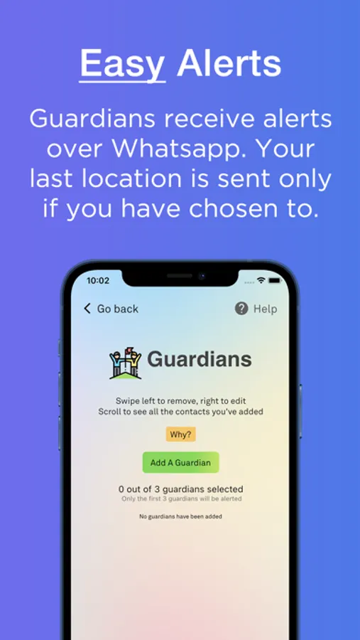 Guardians will be sent a message with your encrypted location and a customized message with the hint to unlock the location.