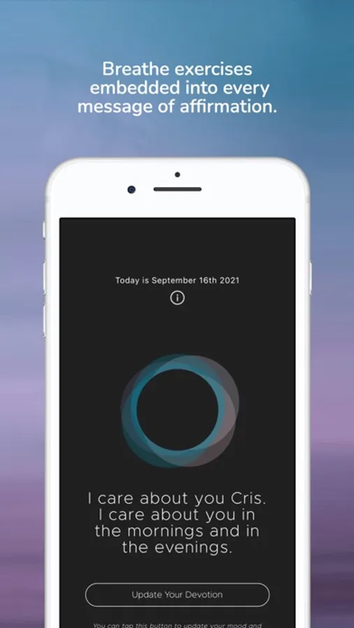 Devotion is a free tool of affirmation from Euphoria (the makers of Solace, Clarity, Bliss, and Windfall), which can intelligently tailor messages based on your gender and your mood.