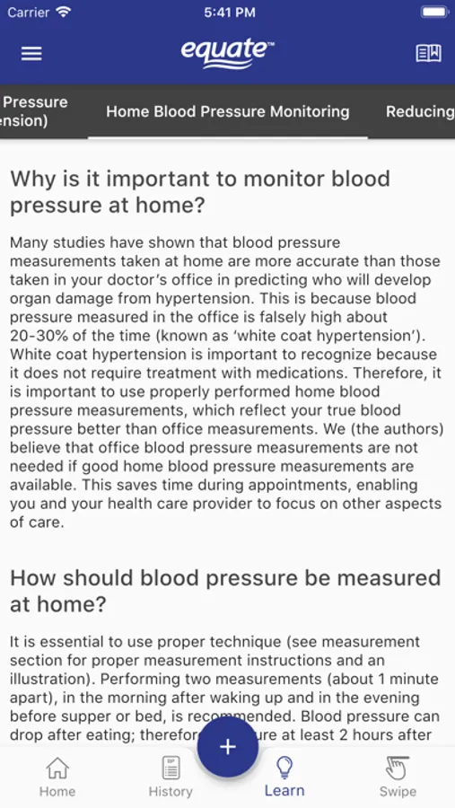 • Rapidly and efficiently calculate blood pressure averages with our Swipe Averaging™ feature. Bring your phone to your next appointment with your physician or pharmacist, and they can use Swipe Averaging™ to quickly and easily assess your blood pressure for clinical decision making.