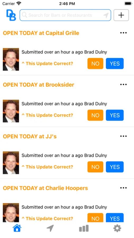 When people go out for a night on the town, they might spend a significant amount of time waiting in line to get into a bar or night club or there might not be anywhere to sit or stand if the place is too busy. This is a high-intensity high-frequency problem for users that go out regularly (weekly). These issues might be even more problematic should the weather be especially cold or hot or if it starts to rain or snow. Dodgeball was created to solve these problems.