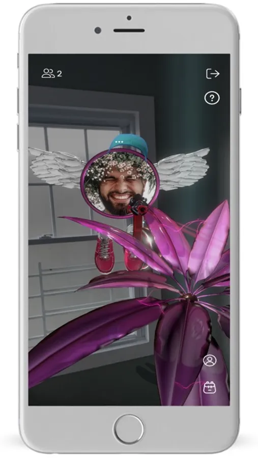 The smartphone controls your avatar, linking your physical space and real world movement to the avatars movement in the shared experience. For example, if you bow in real life, your avatar bows in virtual space. If you jump up and down your avatar jumps up and down.