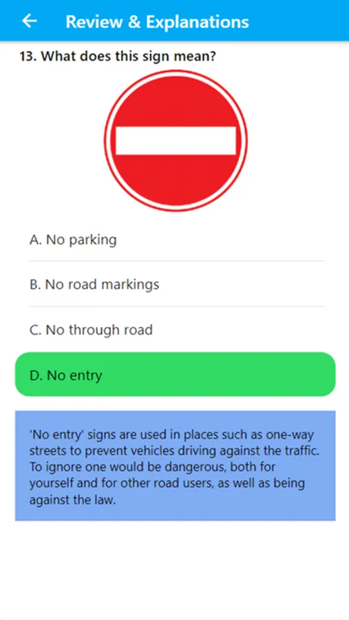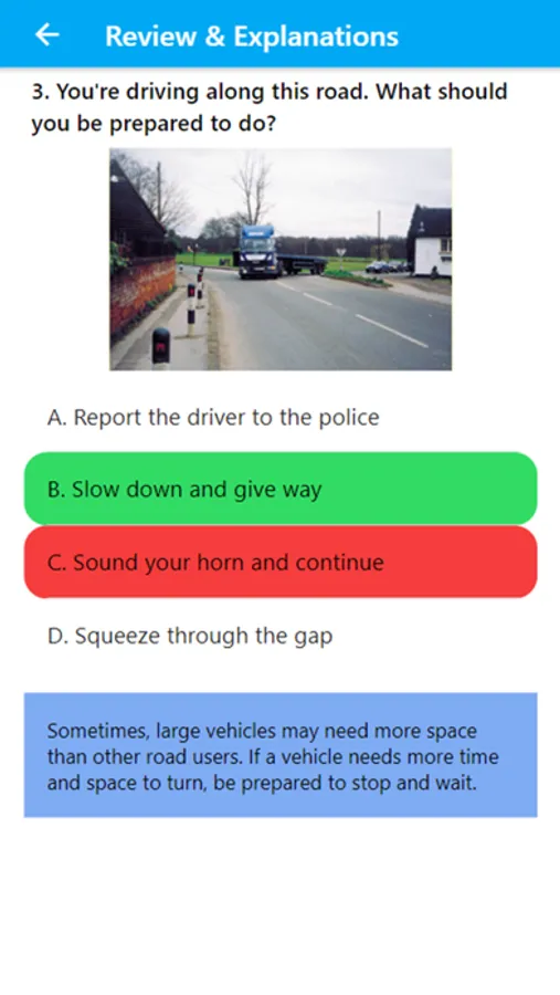 - DVSA Explanation - Each practice question contains the explanation of the answer from the DVSA, increasing the effectiveness of your preparation.