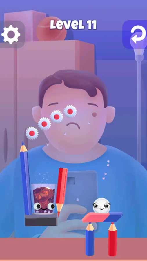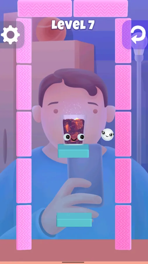 Cola comes in a differently shaped glass and can be located in various places. All you have to do is shoot your ball to its destination.