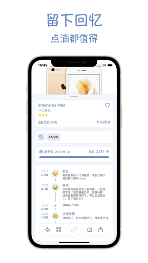 擅长:针对某个主体记录经历、时间、体验,加入目标日期,让关键日一目了然。