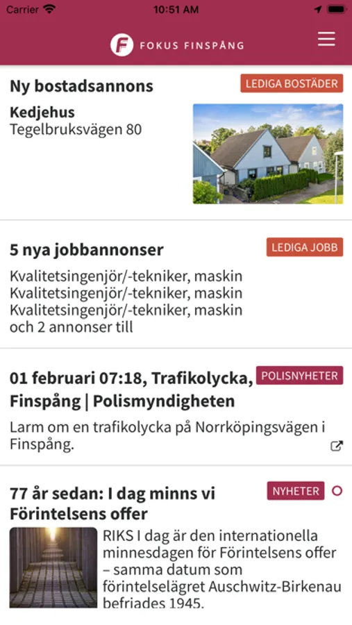En app för hela Finspång. Nyheter, samhällsinformation, dagens lunch, bostäder till salu m.m.