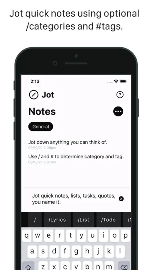 Jot down your thoughts, tasks, lists, notes and ideas using this minimal notes app. Use "/" or "#" in-line to determine how everything is categorized or just jot and let the app take care of that for you.