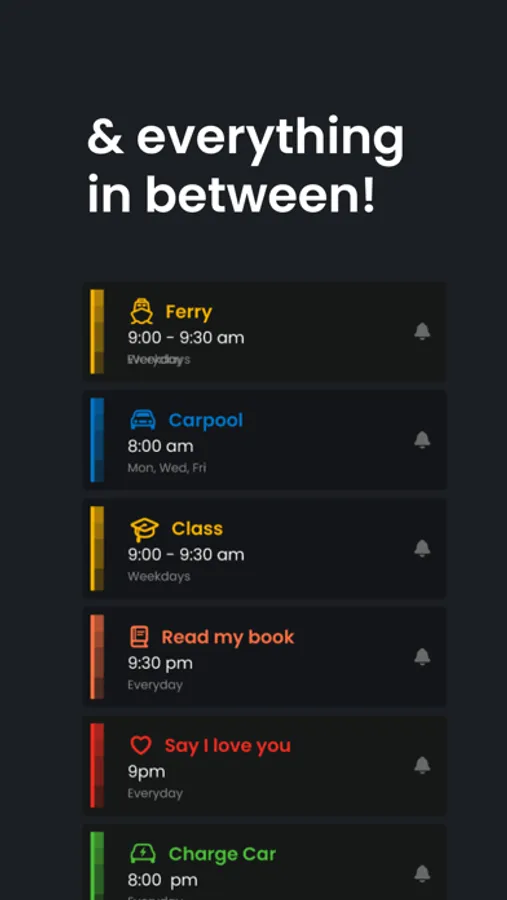 Nudge is a simple daily schedule and alarm app that helps remind you to do all the regularly occurring things such as take medicine, drink water, trash day, stretch break, pick up the kids, walk the dog, call your mom to tell her you love her (or dad too).