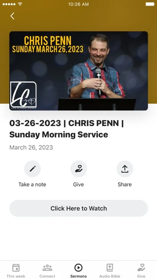 This app will help you stay connected at Life in Christ Church. You can watch, listen, download and share live or past messages; stay up to date with push notifications; give; read the bible; check out our upcoming events, and so much more!