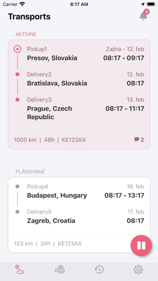 Application Transportly Driver helps drivers to maintain an overview of all their upcoming transports, and also gives them a way to communicate with dispatchers and share their location to track the transport. After the login, the driver can see all transports assigned to him, additional information, and has the power to update every status change of the transport, without the need to call the dispatchers.