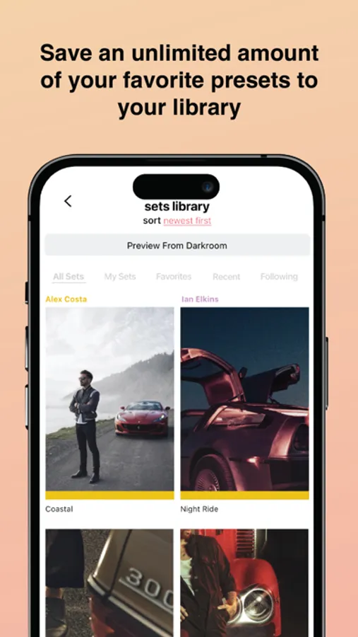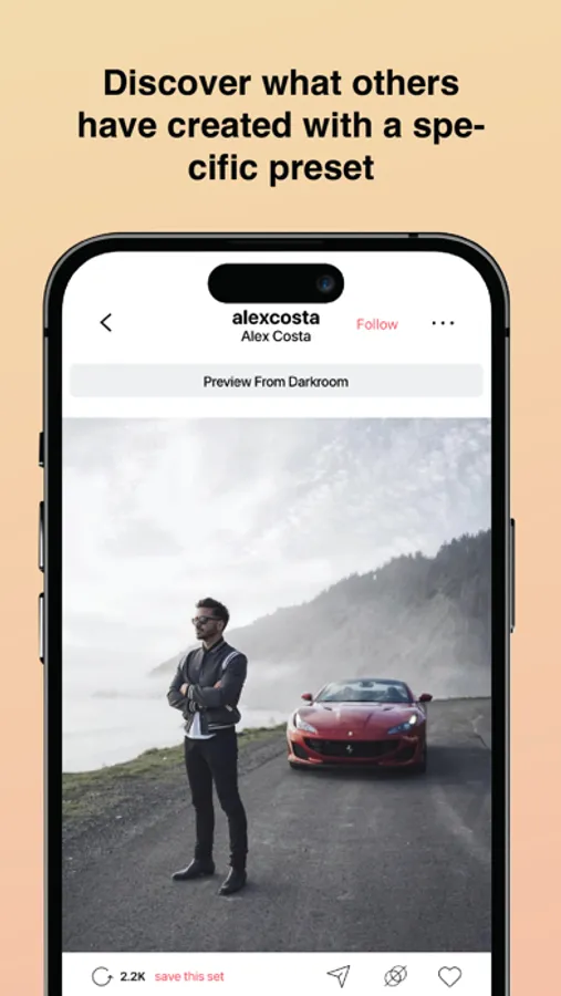With Sets, you can create your own custom presets and share them with the community. Discover presets created by other users and apply them to your own photos with just one tap.