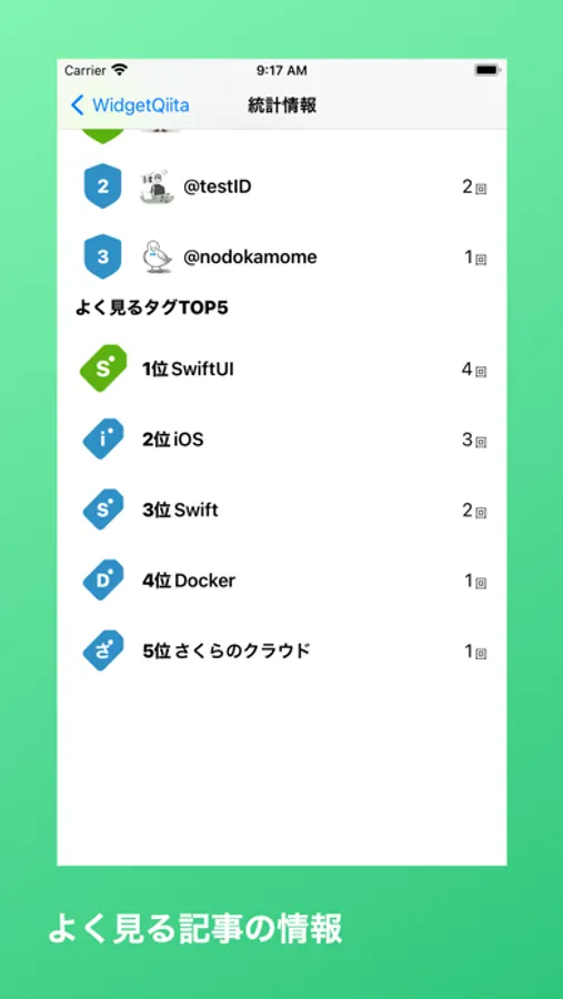- 閲覧した記事をもとによく見るユーザーやタグのランキングを生成します。