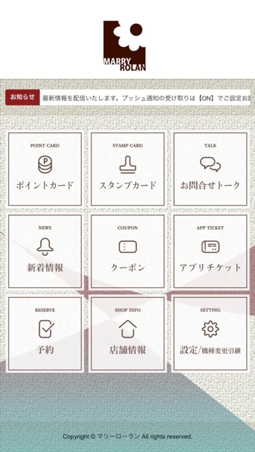 ・【Marryrolan(マリーローラン)】からの最新情報をプッシュ通知で受け取れます。