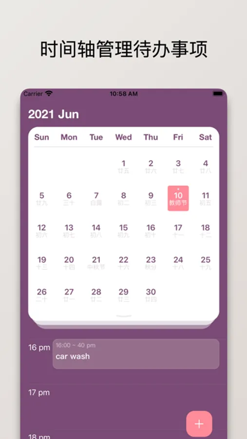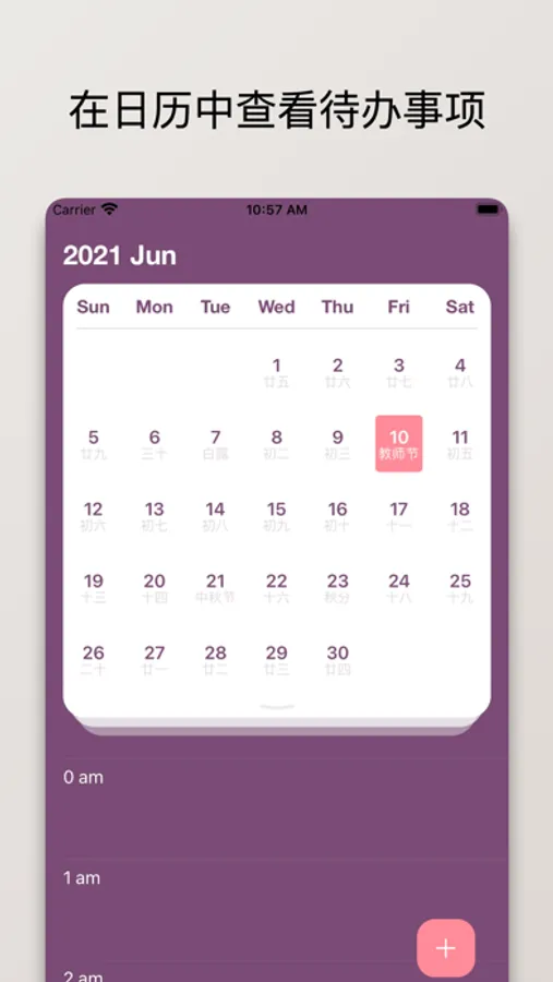 创建完成的待办会在日历下的时间轴上显示,时间轴表示这一天的日程,简单明了