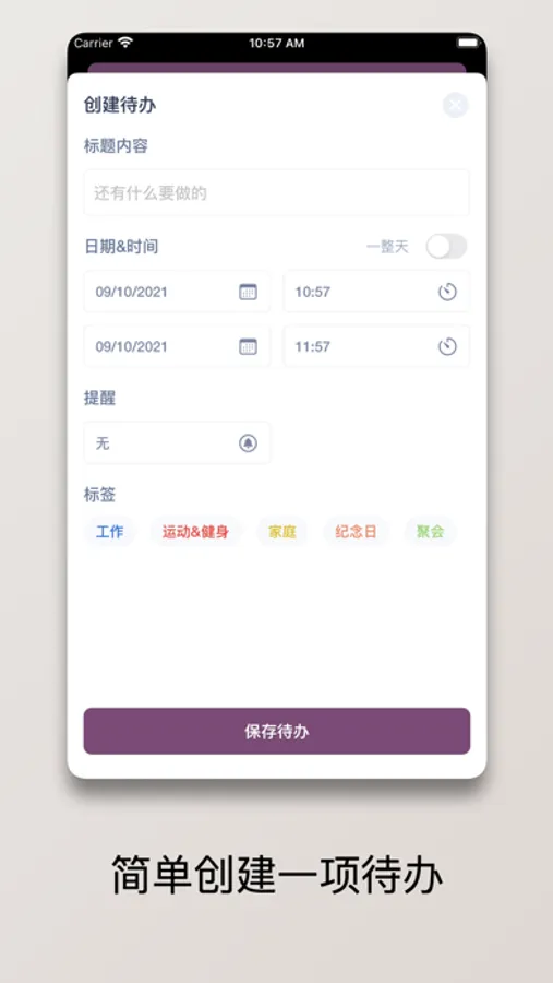 极简的创建功能,让你专注事情,而非其他无关事项,您只需要关心:什么时间,做什么事情