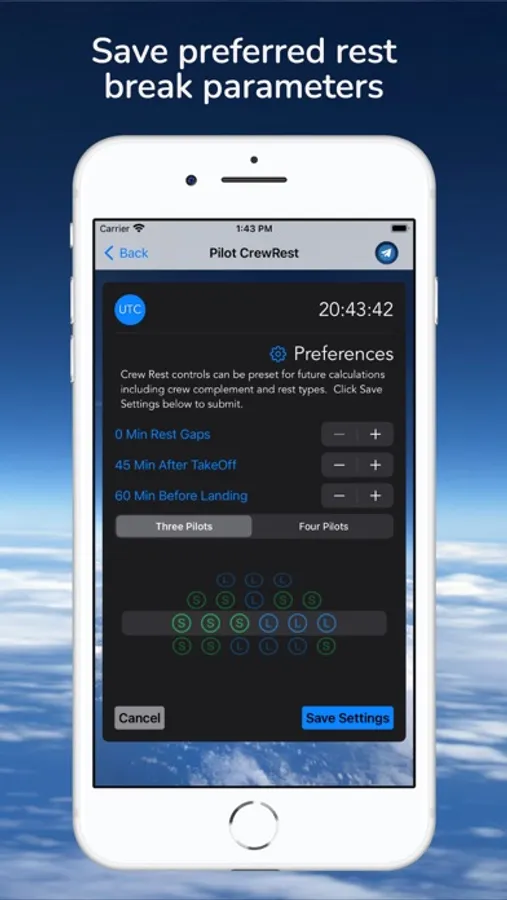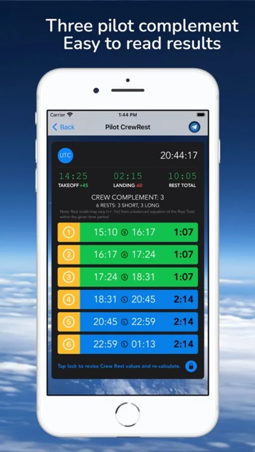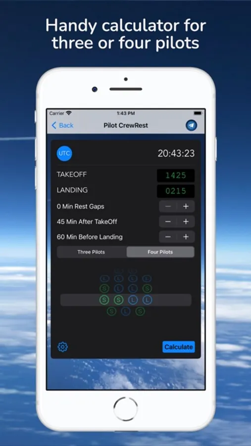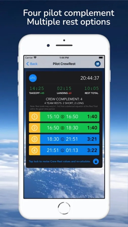 Pilot CrewRest is a handy tool to calculate various rest types for three or four flight deck crew complement.